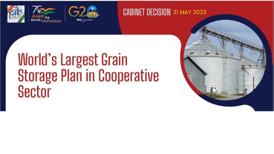The Union Cabinet chaired by the Prime Minister Shri Narendra Modi, today approved the constitution and empowerment of an Inter Ministerial Committee (IMC) for facilitation of the “World’s Largest Grain Storage Plan in Cooperative Sector” by convergence of various schemes of the Ministry of Agriculture and Farmers Welfare, Ministry of Consumer Affairs, Food and Public Distribution and Ministry of Food Processing Industries.