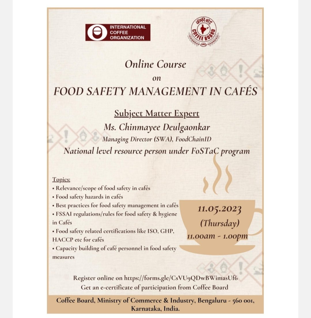 Free training, Food Safety Management in Cafes – Coffee Board, Govt of India