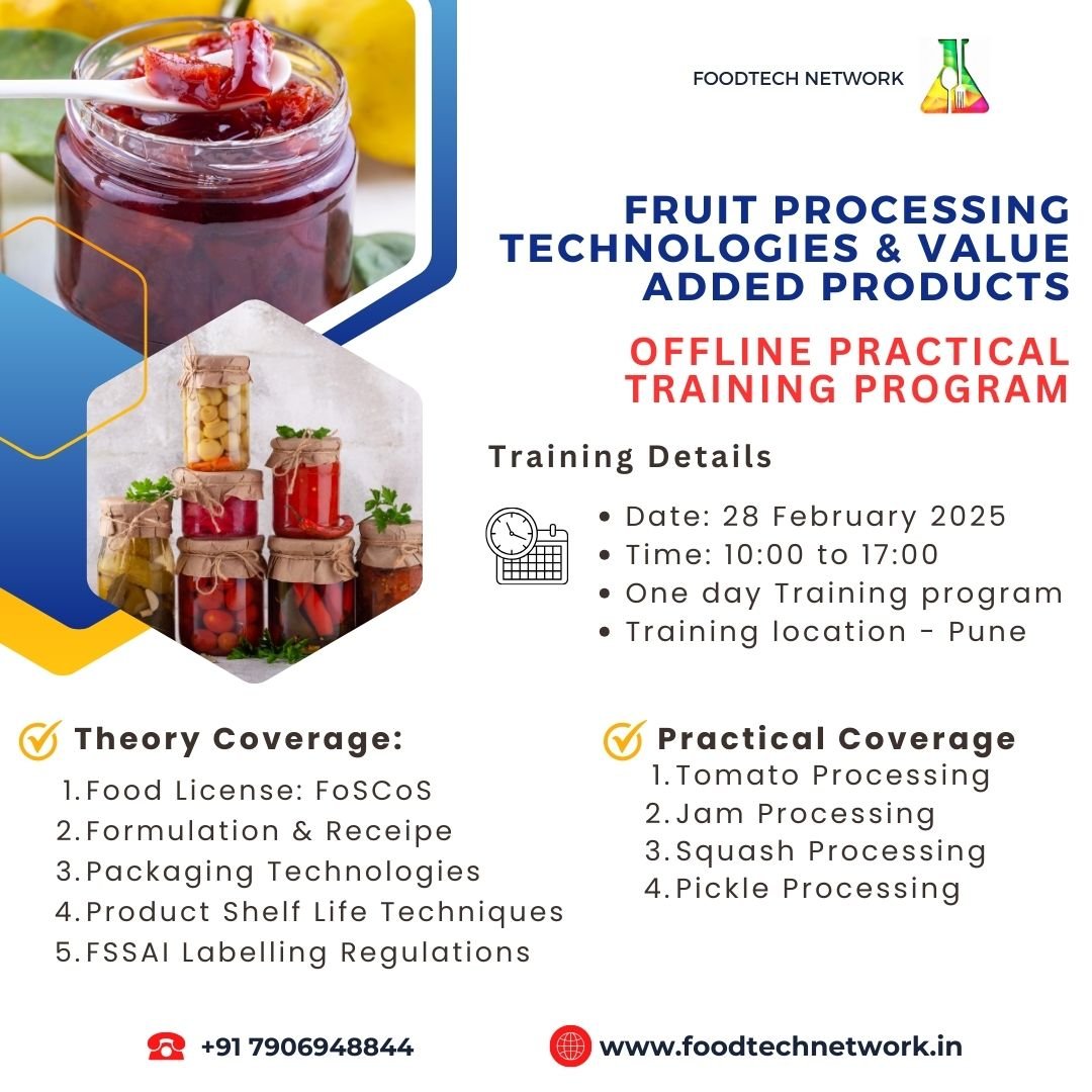 Fruit Processing technique and value added products – Offline/Hands-on practical Training