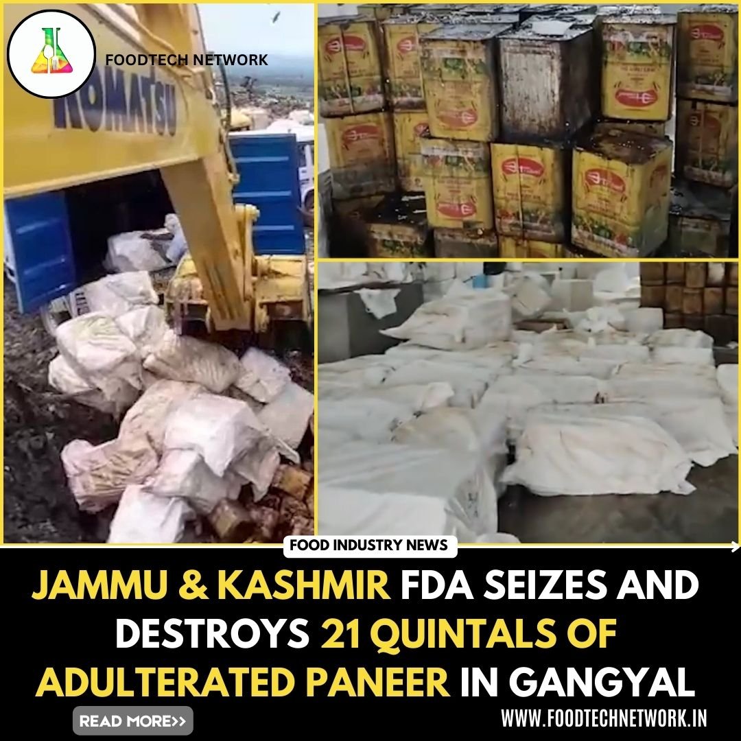 In a major crackdown on food adulteration, the Jammu & Kashmir Food and Drug Administration (FDA) seized and destroyed 21 quintals of synthetic paneer in the Gangyal area. The raid was carried out as part of a wider campaign to safeguard public health and ensure that unsafe food products do not reach consumers.