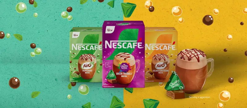 The Aero Peppermint Mocha and Quality Street Green Triangle Mocha will join the much-loved Aero Golden Honeycomb Mocha as part of the expansion of the Nescafé collaborations range
