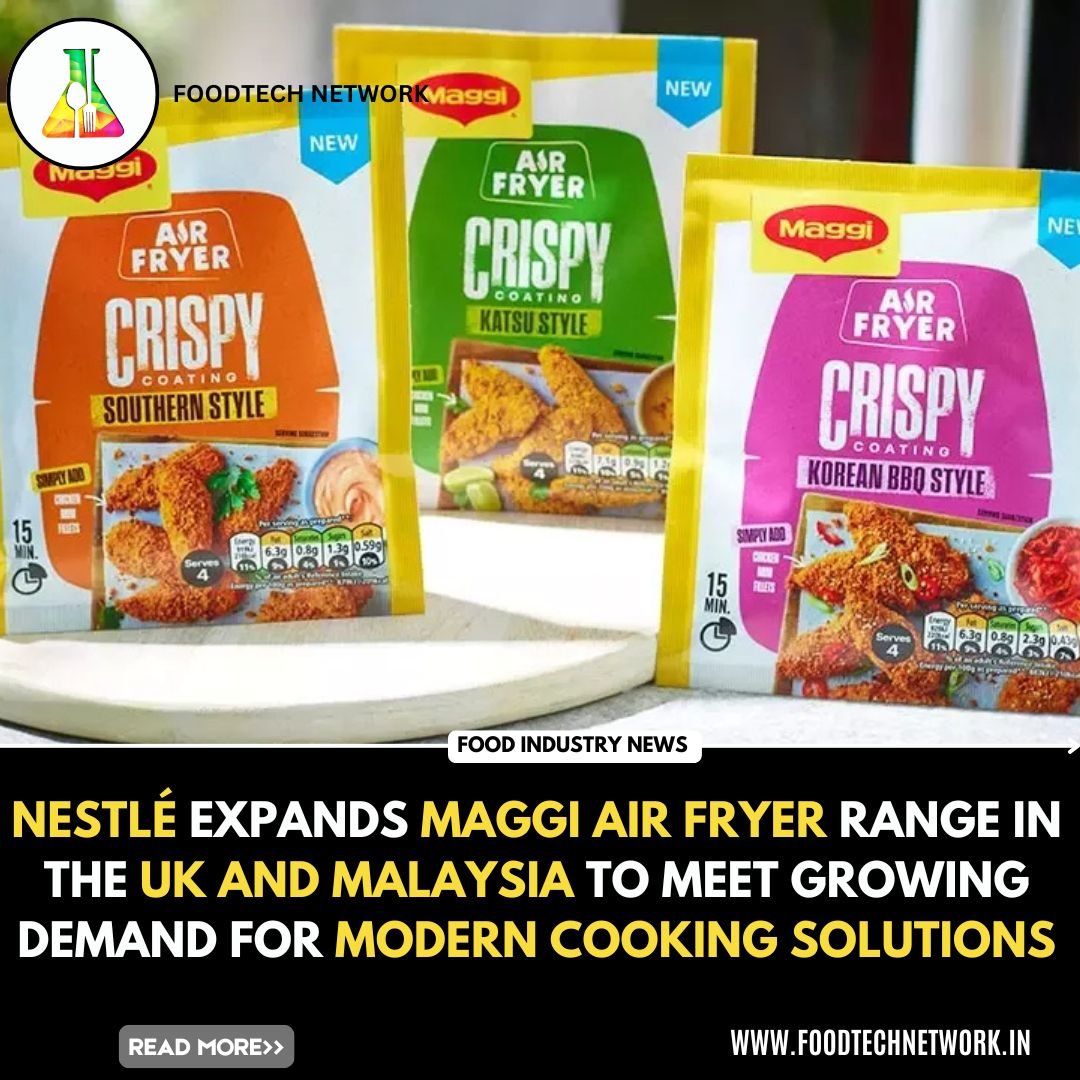 Nestlé has expanded its Maggi Air Fryer Range in the United Kingdom (UK) and Malaysia, catering to the rising popularity of air fryer cooking. With 33% of households globally now owning an air fryer, the company is capitalizing on this trend by offering new, convenient recipe mixes designed to create flavorful and crispy meals with ease.