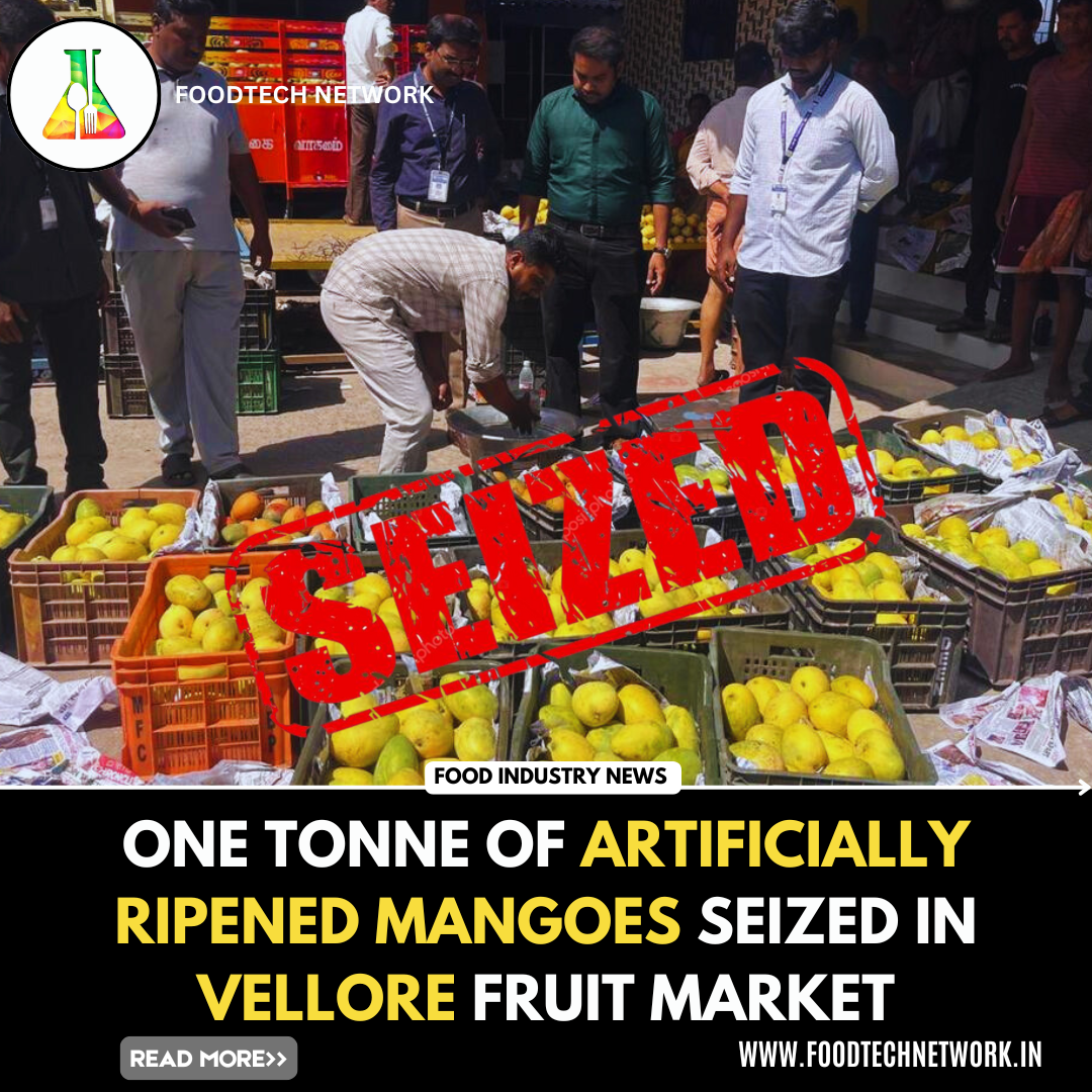 In a significant crackdown on food adulteration, the Food Safety Division and Health Department of the Vellore Corporation seized one tonne of artificially ripened mangoes during a surprise inspection at the historic Vellore fruit market on Thursday.