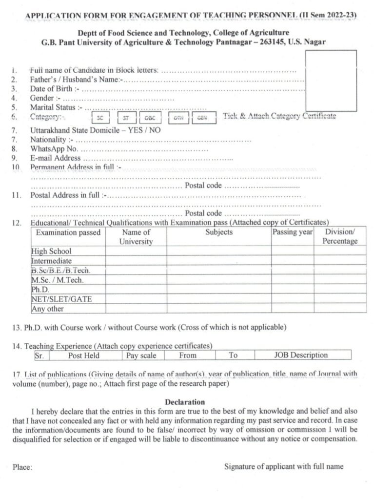 - The candidates may have to make presentation on any topic related to Food Science and appear in interview 8h Feb, 2023, at 9.30 am in office of the Head, Deptt of Food Science & Tech., College of Agriculture, 1. 2. on Pantnagar.