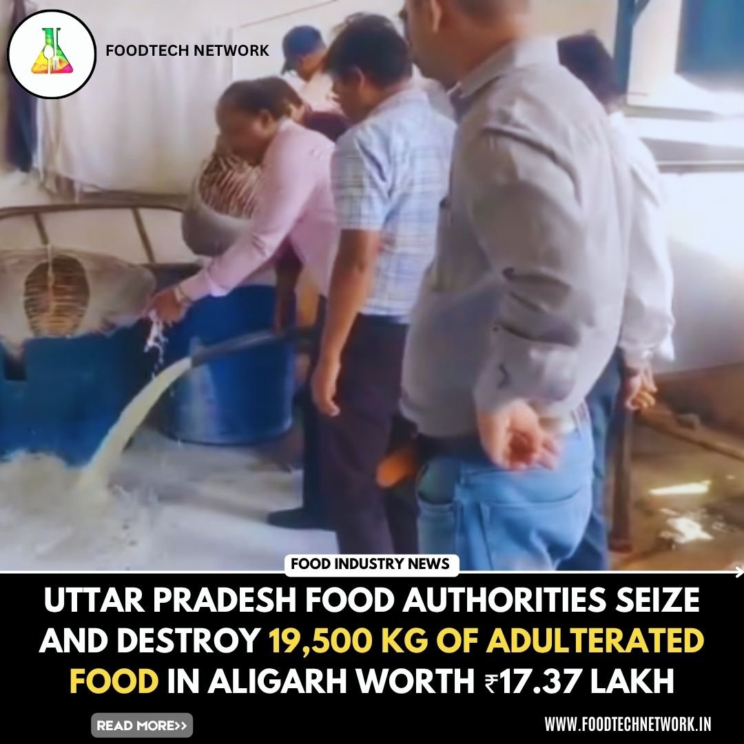 In a major crackdown on food adulteration, the Uttar Pradesh Food and Drug Administration (UPFDA) conducted an extensive inspection and enforcement operation in Aligarh. During the action, officials seized a total of 19,500 kilograms of adulterated food products, valued at approximately ₹17.37 lakh, and destroyed them on the spot to prevent them from reaching consumers.