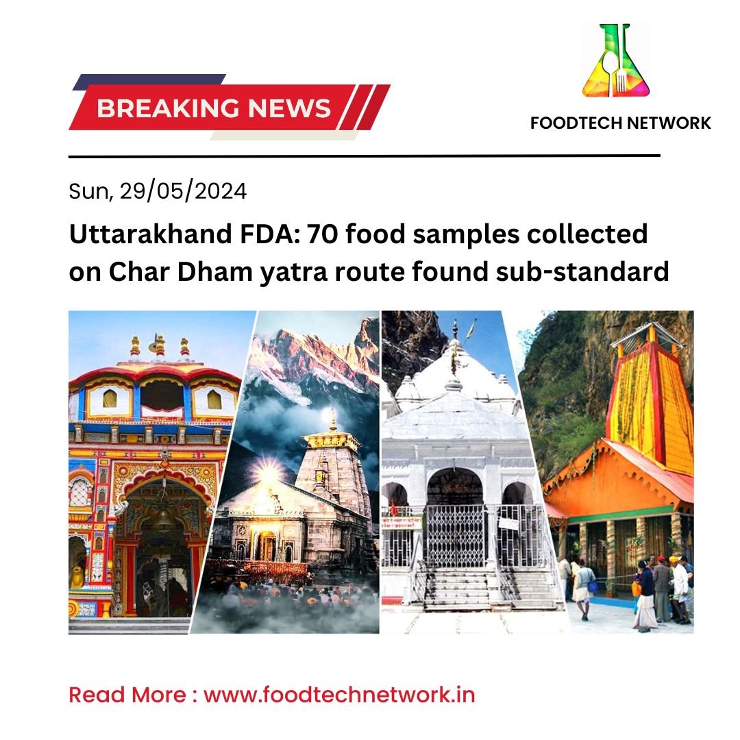 Around 70 of over 250 samples of food items collected on the Char Dham route in Uttarakhand were found sub-standard, according to officials. The samples were taken between May 9 and 12 through a mobile testing van provided by the Food Safety and Standards Authority of India (FSSAI).
