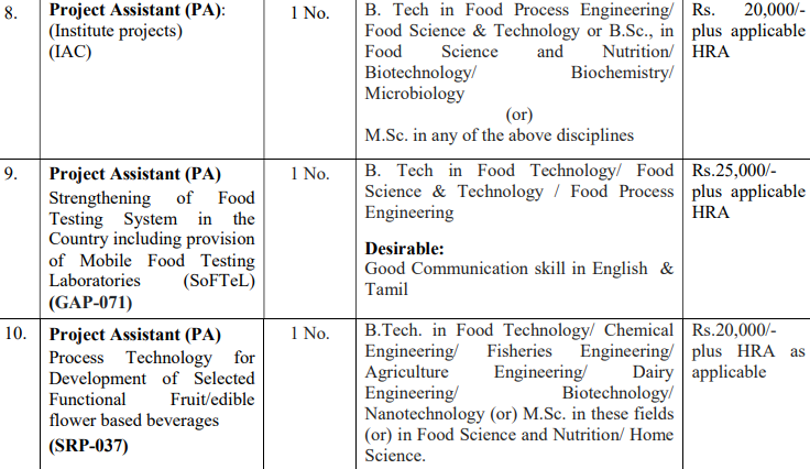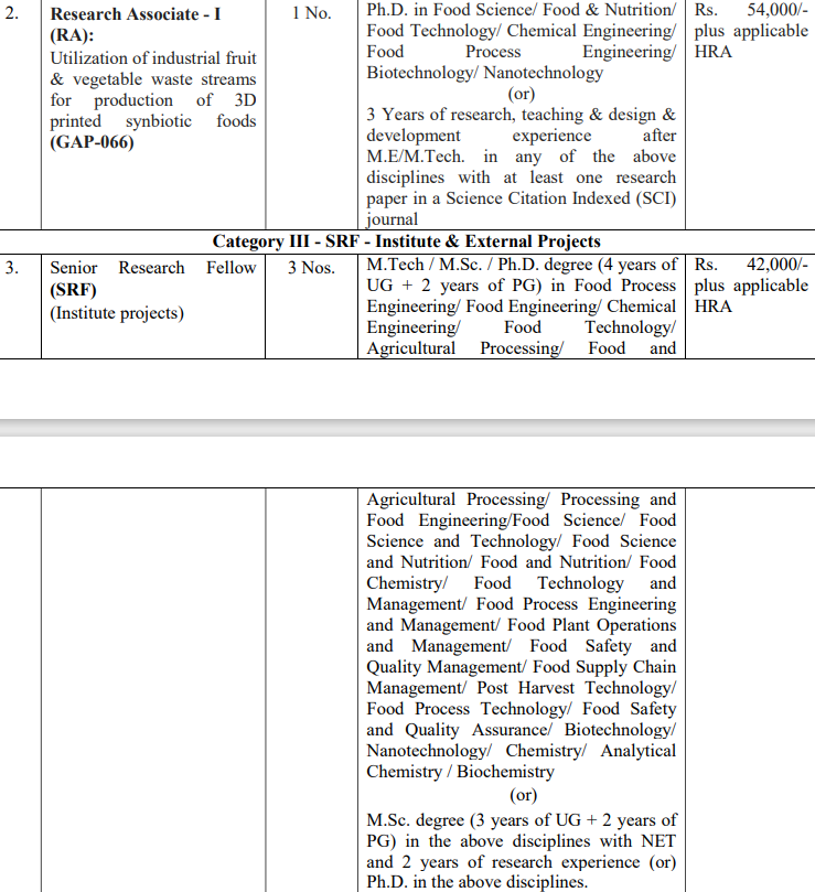 A Walk-in-interview will be conducted for the selection of Assistant Professor(C) / Research Associate – I/ Senior Research Fellow & Project Assistant on Contract Basis at National Institute of Food Technology, Entrepreneurship and Management, Thanjavur (NIFTEM-T) – 613 005 (Tamil Nadu) on 18.12.2023 at 9.30 AM. Eligible and interested candidates can appear for the walk-in-interview for working in the following
